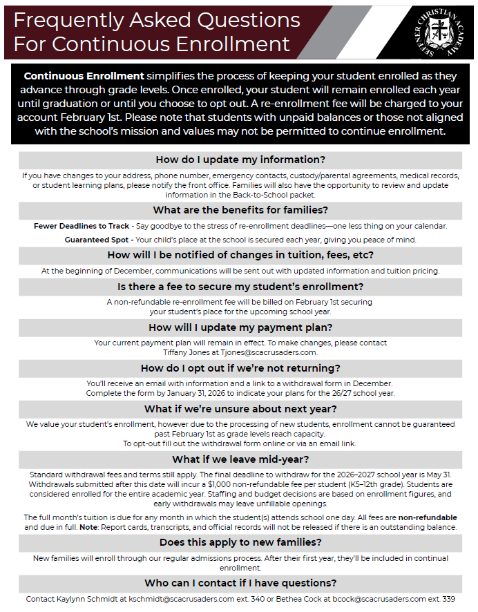 Thank you for considering Seffner Christian Academy as a partner in your child’s education. We’re excited to share all that our school has to offer your family. If you’re ready to begin your journey with us, start the online application process here.